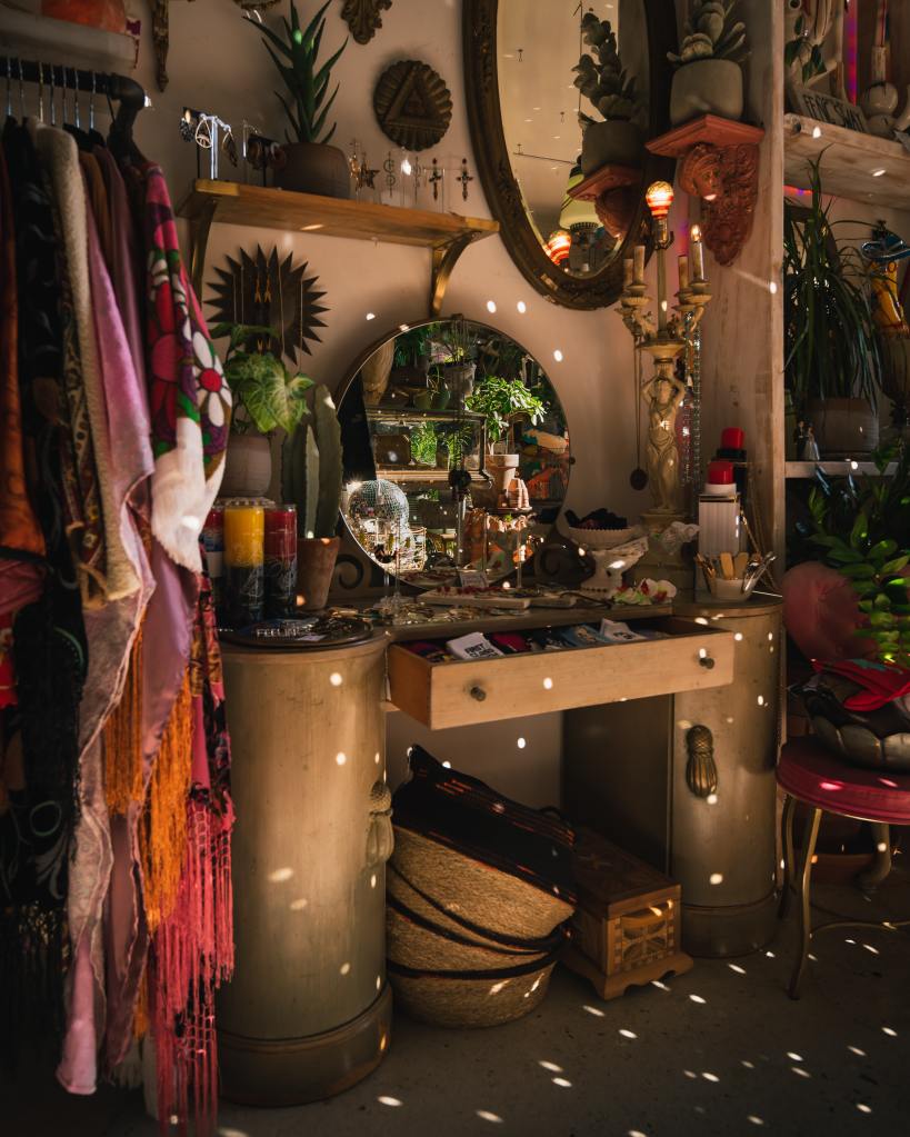 “I like to find the beauty in the ugly. When I’m in a thrift store, I gravitate toward pieces I know I’ll wear a ton, and insane pieces that I’m sure most people would consider gross. But I find them inspiring. Our van is currently stocked with some of my random findings from this tour. Maybe I’ll call my aesthetic ‘van fashion’.” – V. Legrand