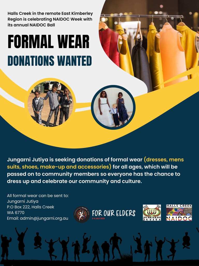 It was only a couple of weeks ago that one such opportunity came up for us, and here we are! This year, NAIDOC falls on the 2nd through the 9th of July and sometimes there are huge events to coincide. One such event is a ball, being held in Halls Creek in Western Australia. The call came out for ball-appropriate attire and we thought, “we can help with that!”.