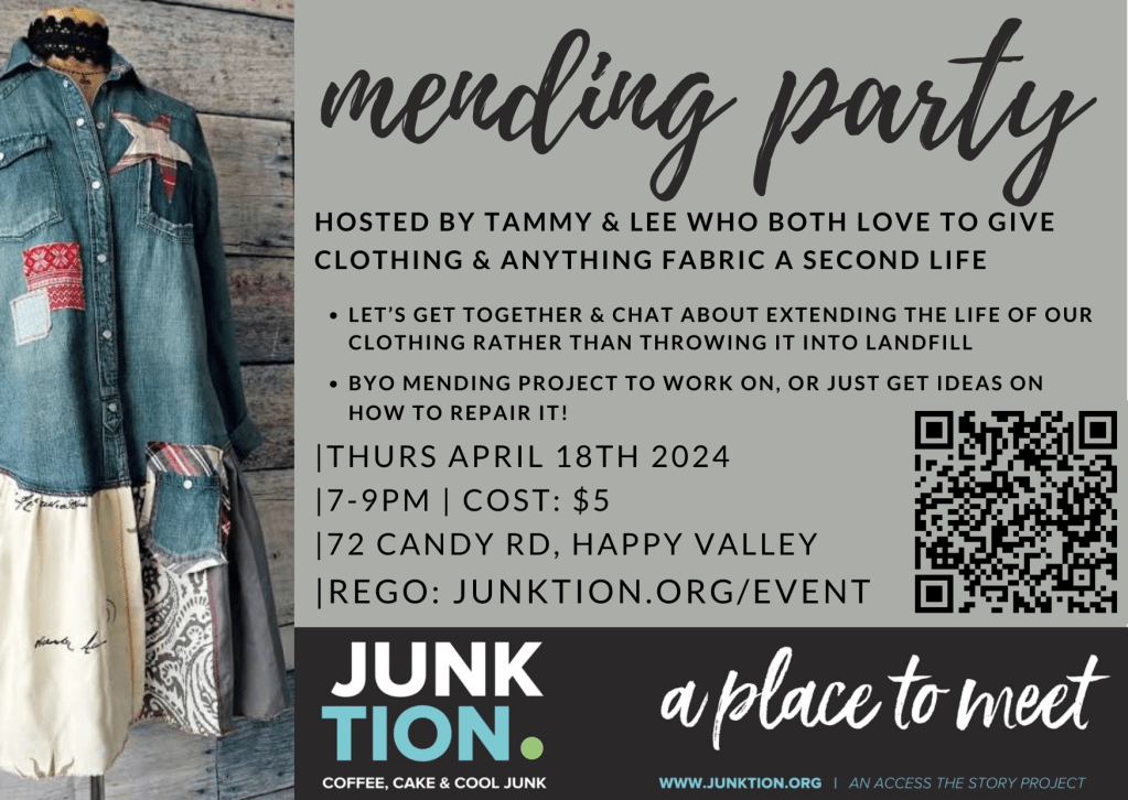 -let’s get together & chat about extending the life of our clothing rather than throwing it into landfill-
